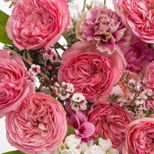 Mariatheresia is a garden rose of pure romance, her blooms unfolding in the most perfect shade of pink. Layers of ruffled petals create a full and graceful form, radiating beauty and tenderness with every opening. Lightly perfumed with a classic garden rose fragrance, Mariatheresia is a rose that embodies elegance and love, a timeless choice for any occasion.